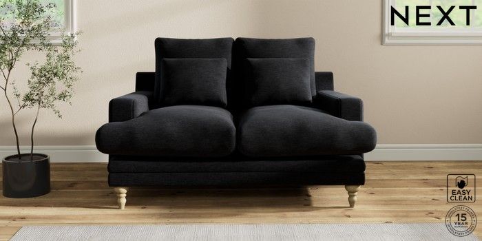 6.12.1 Buy Hutton Deep Relaxed Sit 2 Seater Sofa Fine Chenille Easy Clean Black Country Turned - Light from the Next UK online shop Click here to use our accessible website