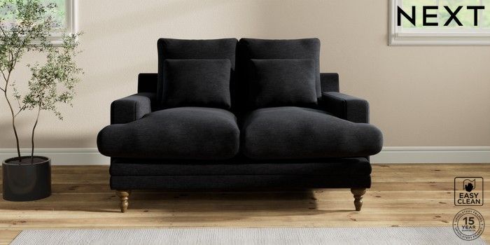 6.12.1 Buy Hutton Deep Relaxed Sit 2 Seater Sofa Fine Chenille Easy Clean Black Country Turned - Mid from the Next UK online shop Click here to use our accessible website