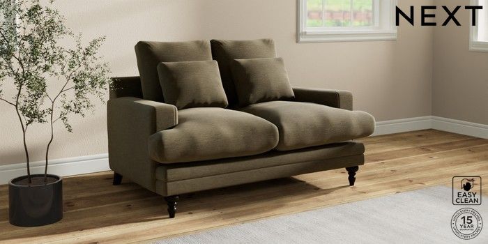 7.0.3 Buy Hutton Deep Relaxed Sit 2 Seater Sofa Fine Chenille Easy Clean Dark Moss Green Country Turned - Dark from the Next UK online shop Click here to use our accessible website