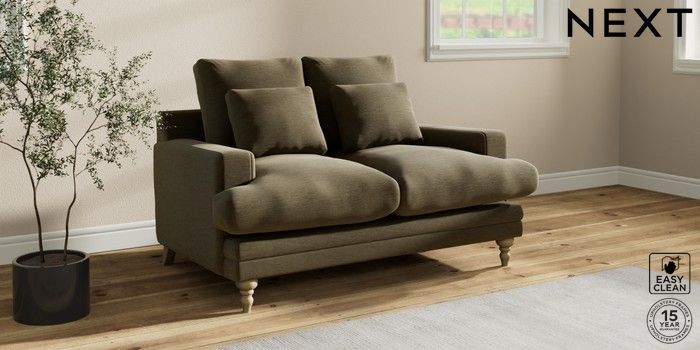 7.0.3 Buy Hutton Deep Relaxed Sit 2 Seater Sofa Fine Chenille Easy Clean Dark Moss Green Country Turned - Light from the Next UK online shop Click here to use our accessible website