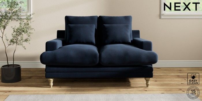 6.12.1 Buy Hutton Deep Relaxed Sit 2 Seater Sofa Fine Chenille Easy Clean Dark Navy Blue Country Turned - Light from the Next UK online shop Click here to use our accessible website