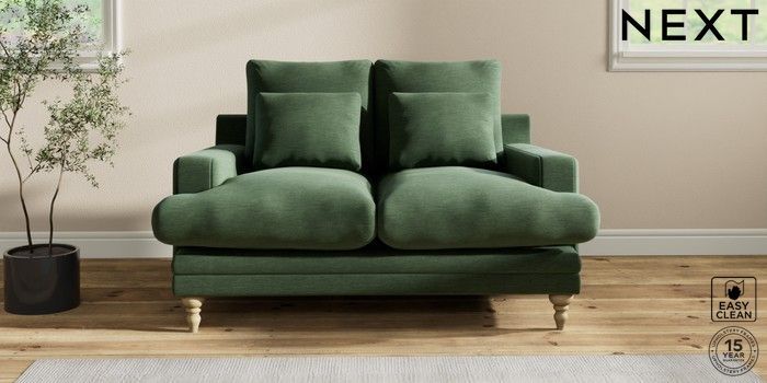 6.12.1 Buy Hutton Deep Relaxed Sit 2 Seater Sofa Fine Chenille Easy Clean Mid Khaki Green Country Turned - Light from the Next UK online shop Click here to use our accessible website