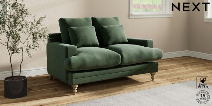 7.0.3 Buy Hutton Deep Relaxed Sit 2 Seater Sofa Fine Chenille Easy Clean Mid Khaki Green Country Turned - Light from the Next UK online shop Click here to use our accessible website