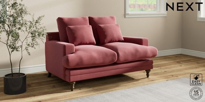 7.0.3 Buy Hutton Deep Relaxed Sit 2 Seater Sofa Fine Chenille Easy Clean Mid Pink Country Turned - Mid from the Next UK online shop Click here to use our accessible website
