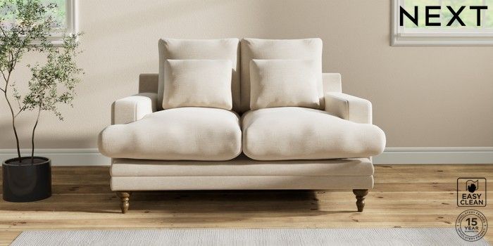 6.12.1 Buy Hutton Deep Relaxed Sit 2 Seater Sofa Fine Chenille Easy Clean Oyster Country Turned - Mid from the Next UK online shop Click here to use our accessible website
