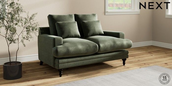 7.0.3 Buy Hutton Deep Relaxed Sit 2 Seater Sofa Luxe Chenille Mid Green Country Turned - Dark from the Next UK online shop Click here to use our accessible website
