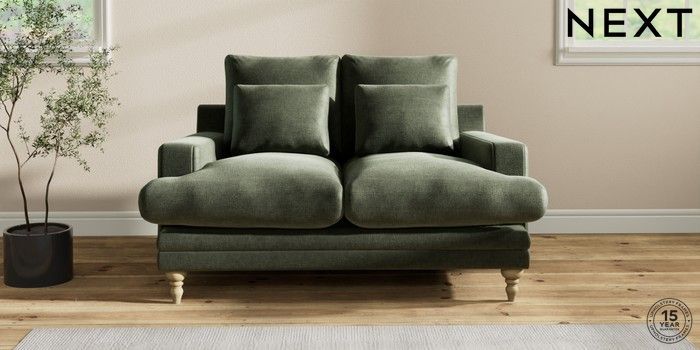 6.12.1 Buy Hutton Deep Relaxed Sit 2 Seater Sofa Luxe Chenille Mid Green Country Turned - Light from the Next UK online shop Click here to use our accessible website