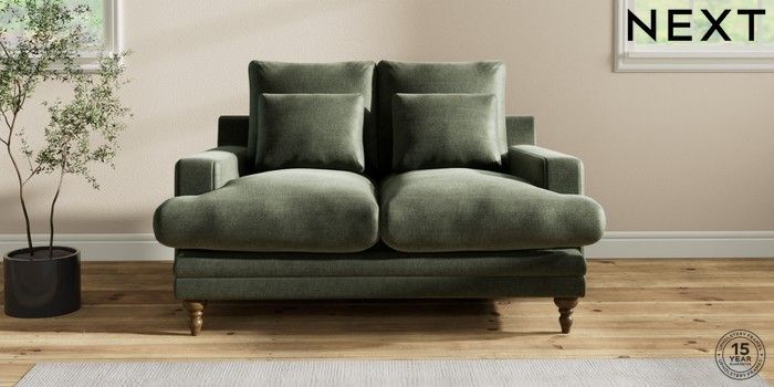 6.12.1 Buy Hutton Deep Relaxed Sit 2 Seater Sofa Luxe Chenille Mid Green Country Turned - Mid from the Next UK online shop Click here to use our accessible website