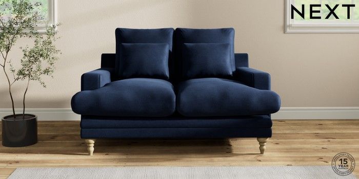 6.12.1 Buy Hutton Deep Relaxed Sit 2 Seater Sofa Luxe Chenille Navy Blue Country Turned - Light from the Next UK online shop Click here to use our accessible website