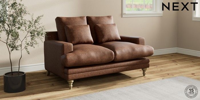 7.0.3 Buy Hutton Deep Relaxed Sit 2 Seater Sofa Monza Faux Leather Easy Clean Chestnut Brown Country Turned - Light from the Next UK online shop Click here to use our accessible website