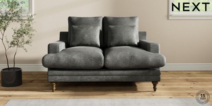 6.12.1 Buy Hutton Deep Relaxed Sit 2 Seater Sofa Plush Chenille Dark Grey Country Turned - Mid from the Next UK online shop Click here to use our accessible website