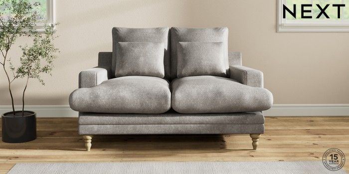 6.12.1 Buy Hutton Deep Relaxed Sit 2 Seater Sofa Plush Chenille Light Grey Country Turned - Light from the Next UK online shop Click here to use our accessible website