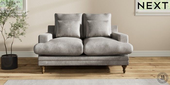 6.12.1 Buy Hutton Deep Relaxed Sit 2 Seater Sofa Plush Chenille Light Grey Country Turned - Mid from the Next UK online shop Click here to use our accessible website