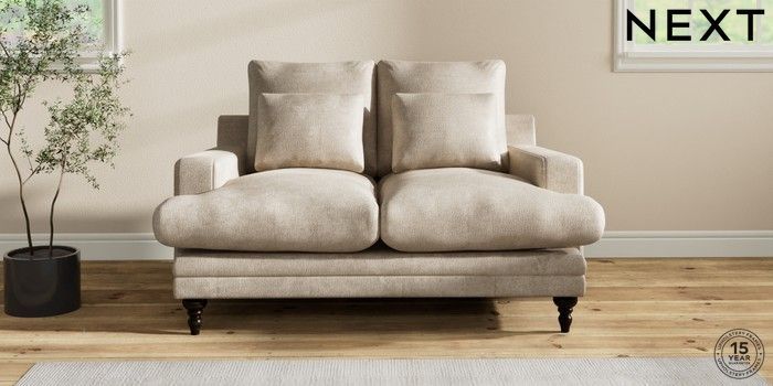 6.12.1 Buy Hutton Deep Relaxed Sit 2 Seater Sofa Plush Chenille Light Natural Country Turned - Dark from the Next UK online shop Click here to use our accessible website