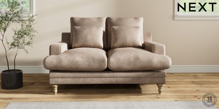 6.12.1 Buy Hutton Deep Relaxed Sit 2 Seater Sofa Plush Chenille Mid Natural Country Turned - Light from the Next UK online shop Click here to use our accessible website