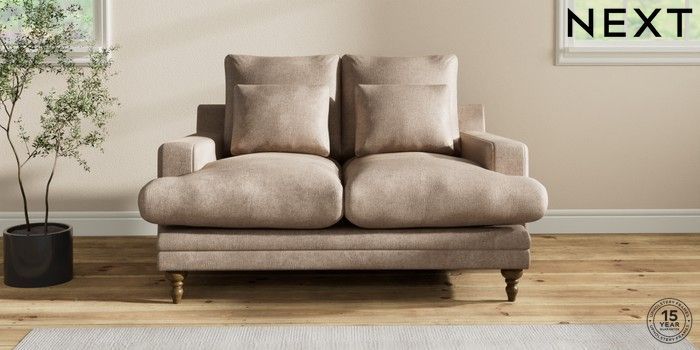 6.12.1 Buy Hutton Deep Relaxed Sit 2 Seater Sofa Plush Chenille Mid Natural Country Turned - Mid from the Next UK online shop Click here to use our accessible website