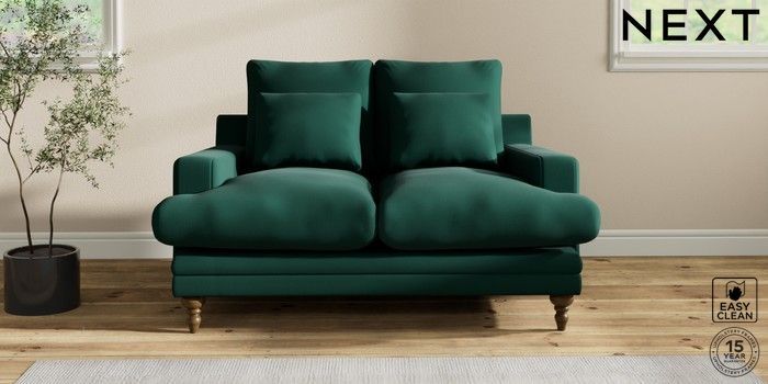 6.12.1 Buy Hutton Deep Relaxed Sit 2 Seater Sofa Plush Velvet Easy Clean Bottle Green Country Turned - Mid from the Next UK online shop Click here to use our accessible website