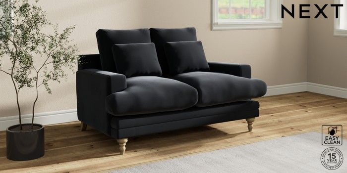 7.0.3 Buy Hutton Deep Relaxed Sit 2 Seater Sofa Plush Velvet Easy Clean Charcoal Grey Country Turned - Light from the Next UK online shop Click here to use our accessible website