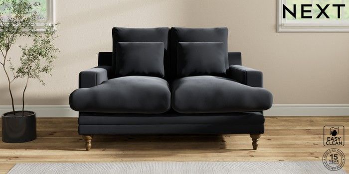 6.12.1 Buy Hutton Deep Relaxed Sit 2 Seater Sofa Plush Velvet Easy Clean Charcoal Grey Country Turned - Mid from the Next UK online shop Click here to use our accessible website