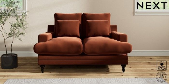 6.12.1 Buy Hutton Deep Relaxed Sit 2 Seater Sofa Plush Velvet Easy Clean Ginger Orange Country Turned - Dark from the Next UK online shop Click here to use our accessible website