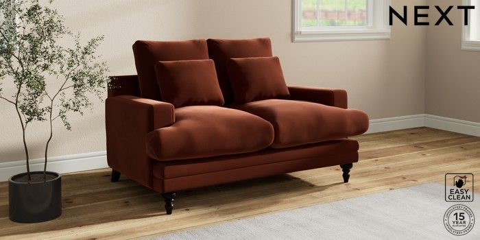 7.0.3 Buy Hutton Deep Relaxed Sit 2 Seater Sofa Plush Velvet Easy Clean Ginger Orange Country Turned - Dark from the Next UK online shop Click here to use our accessible website