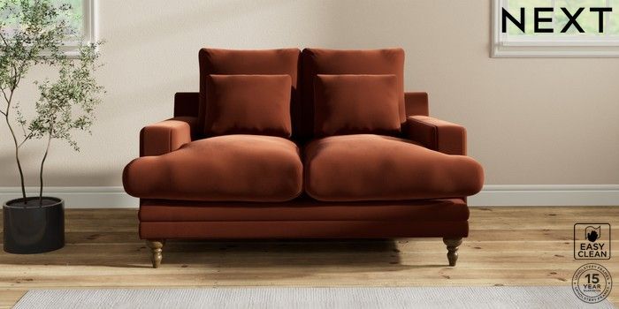 6.12.1 Buy Hutton Deep Relaxed Sit 2 Seater Sofa Plush Velvet Easy Clean Ginger Orange Country Turned - Mid from the Next UK online shop Click here to use our accessible website