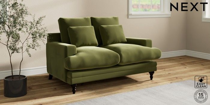 7.0.3 Buy Hutton Deep Relaxed Sit 2 Seater Sofa Plush Velvet Easy Clean Mid Olive Green Country Turned - Dark from the Next UK online shop Click here to use our accessible website