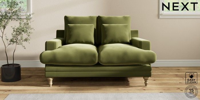 6.12.1 Buy Hutton Deep Relaxed Sit 2 Seater Sofa Plush Velvet Easy Clean Mid Olive Green Country Turned - Light from the Next UK online shop Click here to use our accessible website