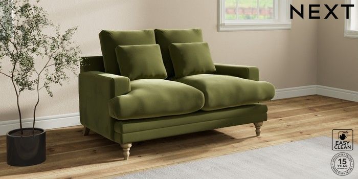 7.0.3 Buy Hutton Deep Relaxed Sit 2 Seater Sofa Plush Velvet Easy Clean Mid Olive Green Country Turned - Light from the Next UK online shop Click here to use our accessible website