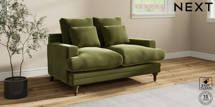 7.0.3 Buy Hutton Deep Relaxed Sit 2 Seater Sofa Plush Velvet Easy Clean Mid Olive Green Country Turned - Mid from the Next UK online shop Click here to use our accessible website