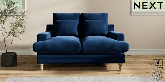 6.12.1 Buy Hutton Deep Relaxed Sit 2 Seater Sofa Plush Velvet Easy Clean Navy Blue Country Turned - Light from the Next UK online shop Click here to use our accessible website