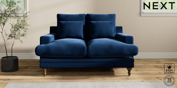 6.12.1 Buy Hutton Deep Relaxed Sit 2 Seater Sofa Plush Velvet Easy Clean Navy Blue Country Turned - Mid from the Next UK online shop Click here to use our accessible website