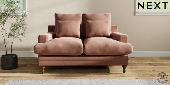 6.12.1 Buy Hutton Deep Relaxed Sit 2 Seater Sofa Relaxed Linen Look Light Rust Brown Country Turned - Mid from the Next UK online shop Click here to use our accessible website