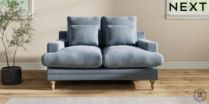 6.12.1 Buy Hutton Deep Relaxed Sit 2 Seater Sofa Relaxed Linen Look Mid Blue Country Turned - Light from the Next UK online shop Click here to use our accessible website