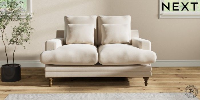 6.12.1 Buy Hutton Deep Relaxed Sit 2 Seater Sofa Studio Chenille Oyster Country Turned - Mid from the Next UK online shop Click here to use our accessible website