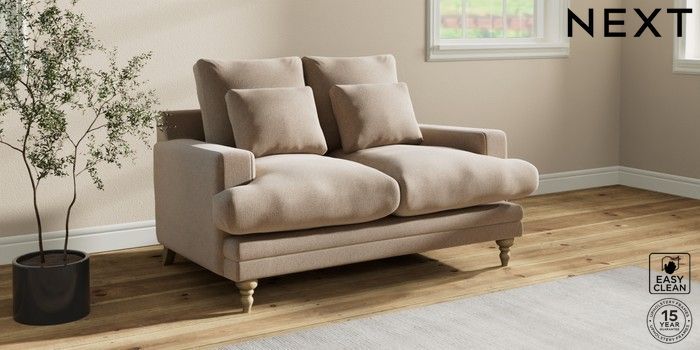 7.0.3 Buy Hutton Deep Relaxed Sit 2 Seater Sofa Tweedy Blend Easy Clean Light Dove Natural Country Turned - Light from the Next UK online shop Click here to use our accessible website