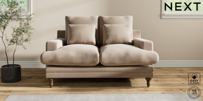 6.12.1 Buy Hutton Deep Relaxed Sit 2 Seater Sofa Tweedy Blend Easy Clean Light Dove Natural Country Turned - Mid from the Next UK online shop Click here to use our accessible website