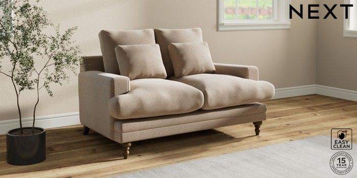 7.0.3 Buy Hutton Deep Relaxed Sit 2 Seater Sofa Tweedy Blend Easy Clean Light Dove Natural Country Turned - Mid from the Next UK online shop Click here to use our accessible website