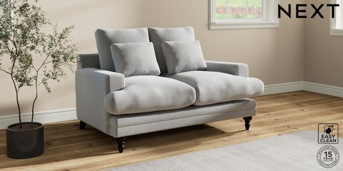 7.0.3 Buy Hutton Deep Relaxed Sit 2 Seater Sofa Tweedy Blend Easy Clean Light Silver Grey Country Turned - Dark from the Next UK online shop Click here to use our accessible website