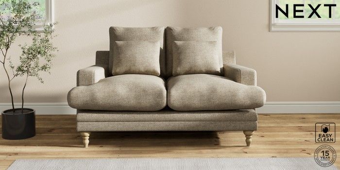 6.12.1 Buy Hutton Deep Relaxed Sit 2 Seater Sofa Woven Chenille Easy Clean Mid Natural Country Turned - Light from the Next UK online shop Click here to use our accessible website