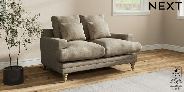 7.0.3 Buy Hutton Deep Relaxed Sit 2 Seater Sofa Woven Chenille Easy Clean Mid Natural Country Turned - Light from the Next UK online shop Click here to use our accessible website