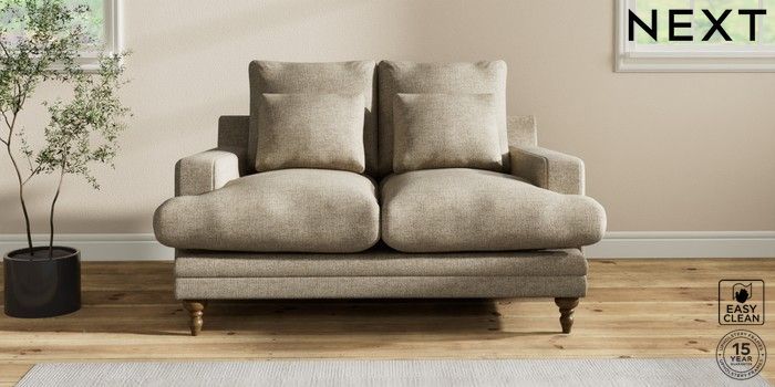 6.12.1 Buy Hutton Deep Relaxed Sit 2 Seater Sofa Woven Chenille Easy Clean Mid Natural Country Turned - Mid from the Next UK online shop Click here to use our accessible website