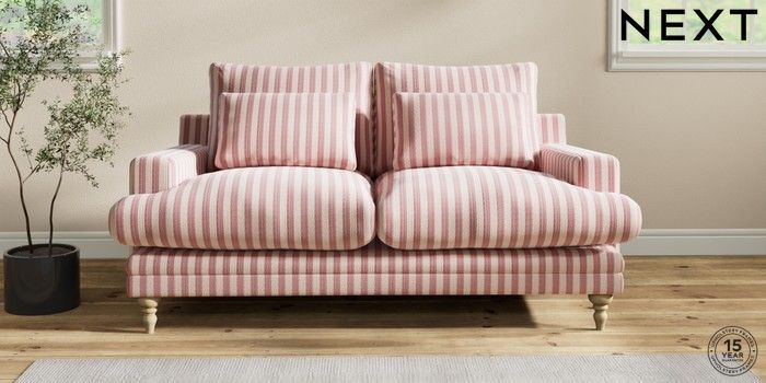 6.12.1 Buy Hutton Deep Relaxed Sit 3 Seater Small Sofa Bold Chenille Stripe Dark Pink Country Turned - Light from the Next UK online shop Click here to use our accessible website