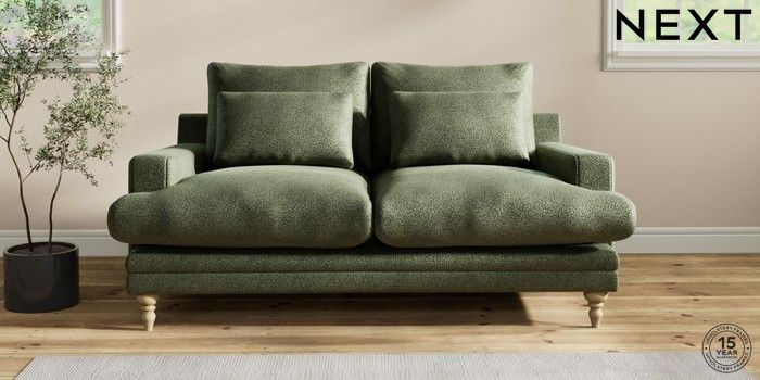 6.12.1 Buy Hutton Deep Relaxed Sit 3 Seater Small Sofa Boucle Chenille Dark Moss Green Country Turned - Light from the Next UK online shop Click here to use our accessible website