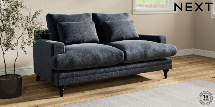 7.0.3 Buy Hutton Deep Relaxed Sit 3 Seater Small Sofa Boucle Chenille Dark Slate Blue Country Turned - Dark from the Next UK online shop Click here to use our accessible website