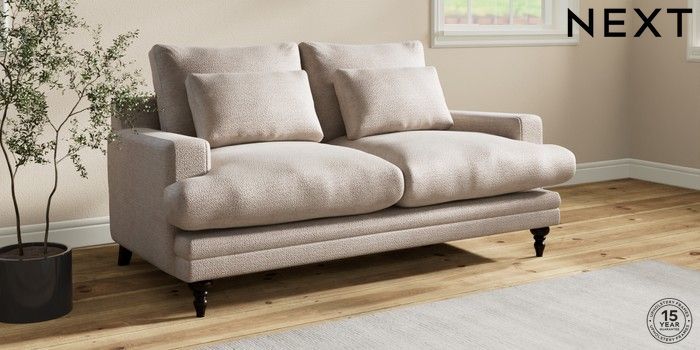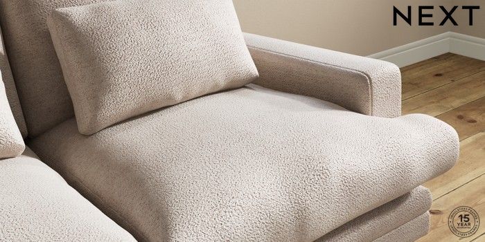 7.0.3 Buy Hutton Deep Relaxed Sit 3 Seater Small Sofa Boucle Chenille Light Natural Country Turned - Dark from the Next UK online shop Click here to use our accessible website