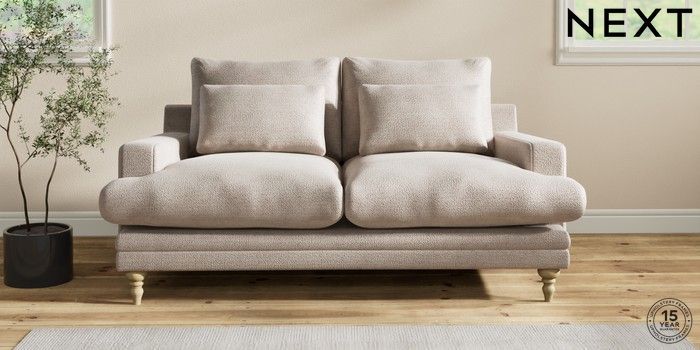 6.12.1 Buy Hutton Deep Relaxed Sit 3 Seater Small Sofa Boucle Chenille Light Natural Country Turned - Light from the Next UK online shop Click here to use our accessible website
