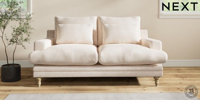 6.12.1 Buy Hutton Deep Relaxed Sit 3 Seater Small Sofa Boucle Chenille Oyster Country Turned - Light from the Next UK online shop Click here to use our accessible website