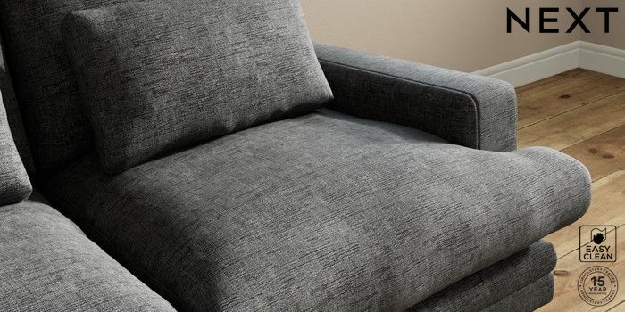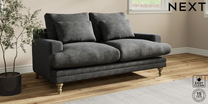 7.0.3 Buy Hutton Deep Relaxed Sit 3 Seater Small Sofa Boucle Weave Easy Clean Charcoal Grey Country Turned - Light from the Next UK online shop Click here to use our accessible website