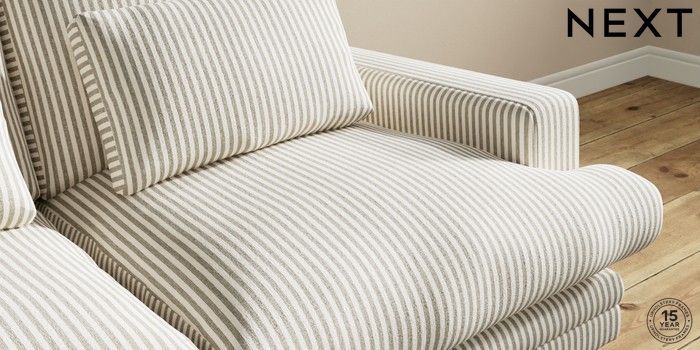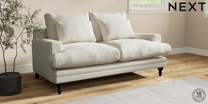 7.0.3 Buy Hutton Deep Relaxed Sit 3 Seater Small Sofa Chenille Stripe Moss Green Country Turned - Dark from the Next UK online shop Click here to use our accessible website
